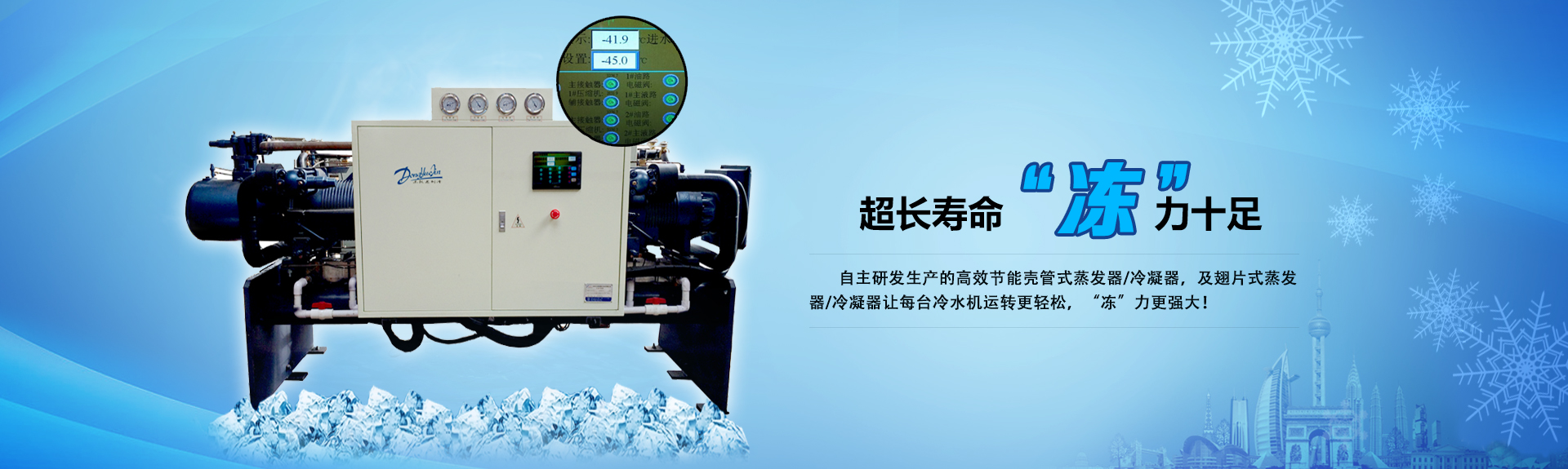 開放式冷水機的蒸發器銅管采用內外螺紋式增強管。銅管表面有螺紋,銅管外表面光滑、冷卻效果好,蒸發器筒身以25mm厚PE保溫板保溫,不結露,冷量損失少。